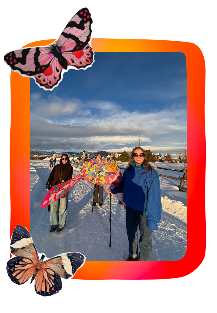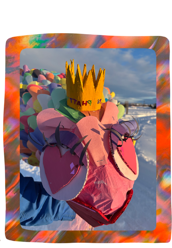 I took part in MSUs collaboration with Random Acts of Silliness February of 2025. Two of my classmates and I created a 6 foot long flying fish lantern named Kween Phatty. We made her from cardboard scraps and found materials around the studio, and each scale was cut out of paper and hand folded and glued to her body. After dark she was illuminated from the inside out and even her wings light up! This event was so much fun, our groups really enjoyed getting to share this with the public and hearing all of the people’s reactions to Kween Phatty was so rewarding.