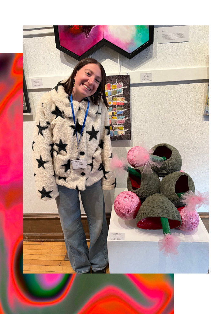 The Livingston center for arts and culture opened a call for art the theme was abstract. I submitted this sculpture that you see on the left, this sculpture was created with paper, yarn, paint, and little but of tool. Each open bulb is wrapped in yard giving it a really fun texture, contrasted to the smaller closed bulbs that are painted and have a rough texture. This event was so much fun thank you to Livingston’s center for Arts and Culture for displaying this piece.
